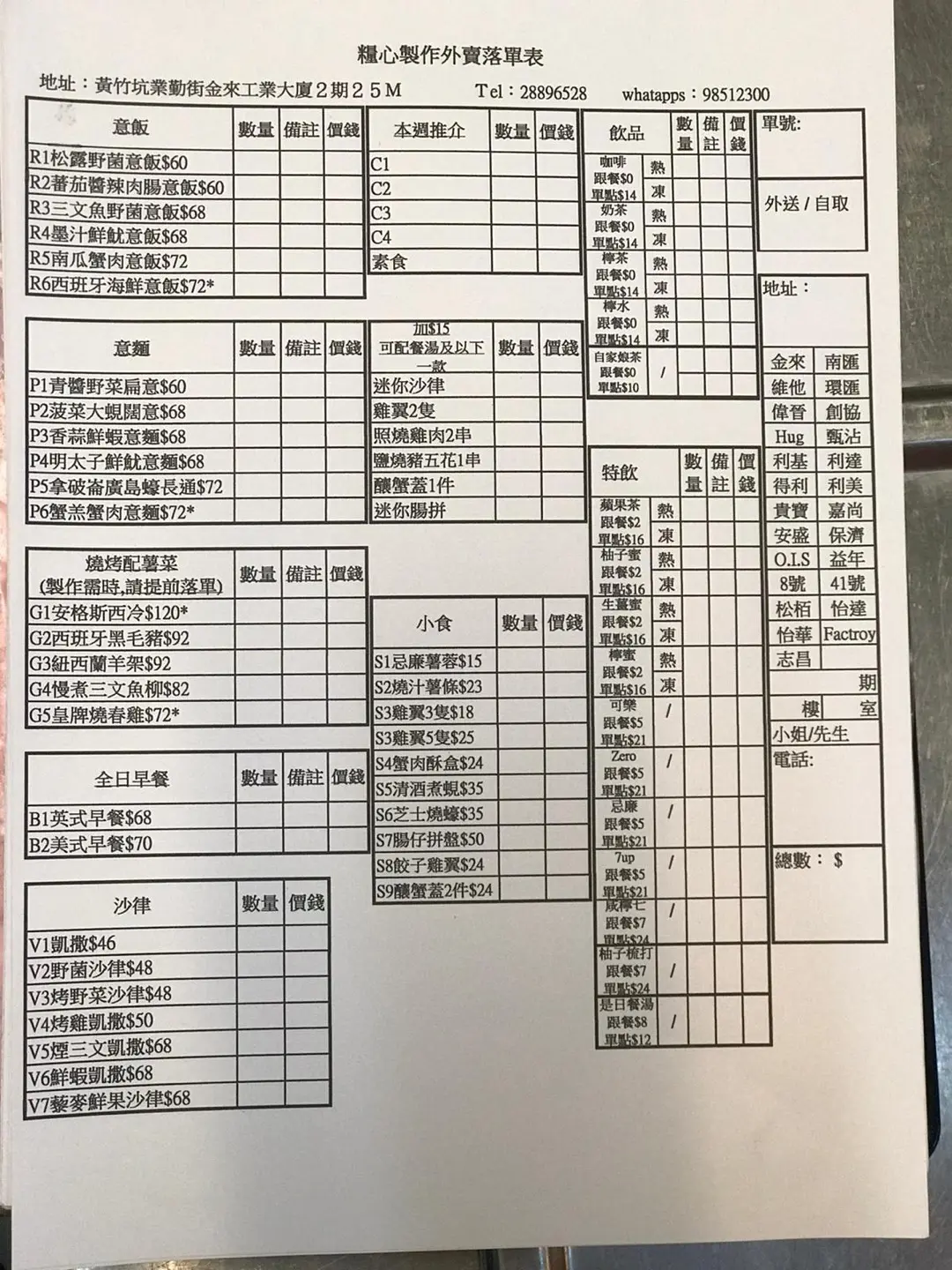 餐厅 + 地区/地址, 菜式/食品…