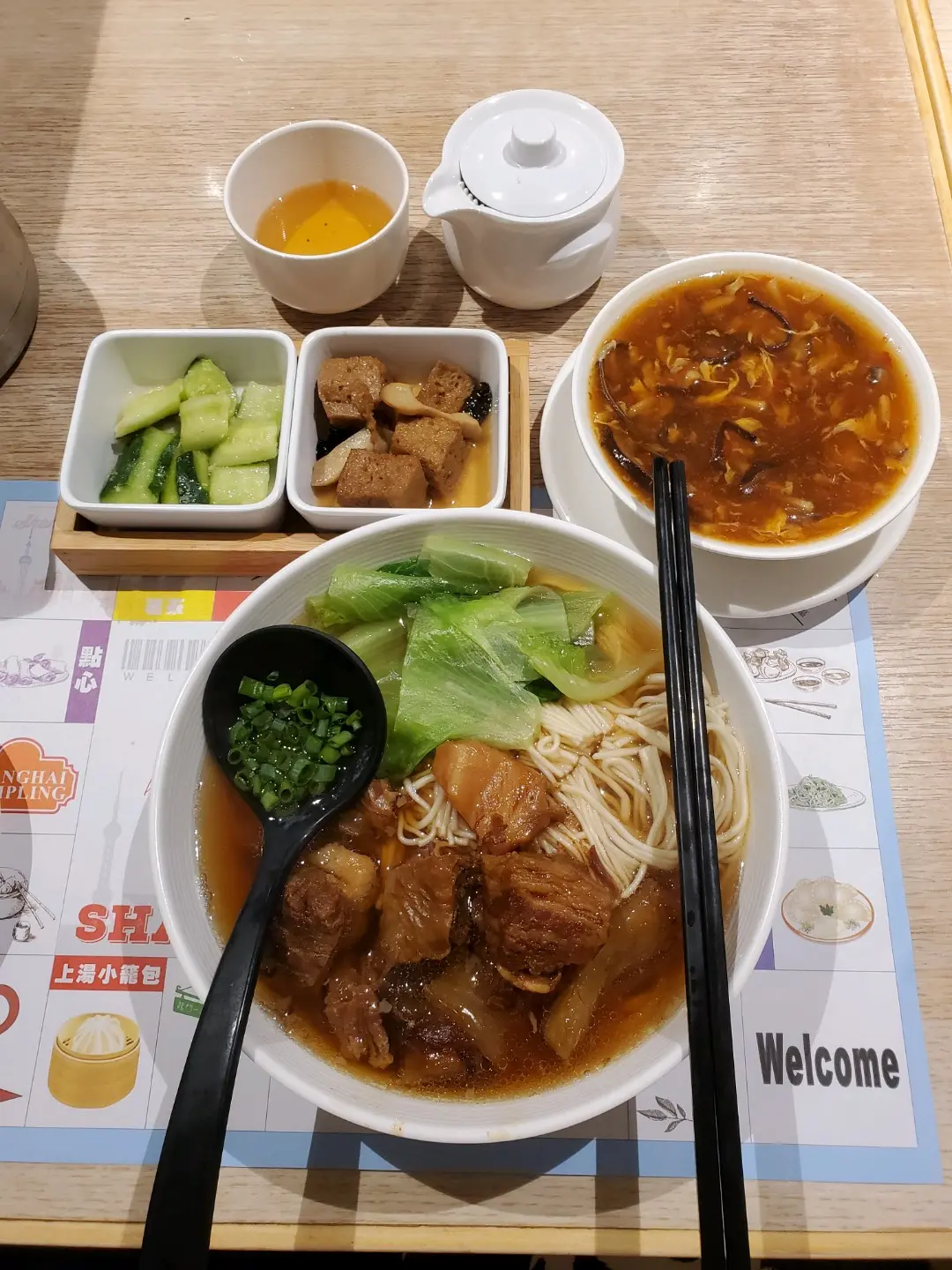 午餐紅燒牛肉麵配酸辣湯