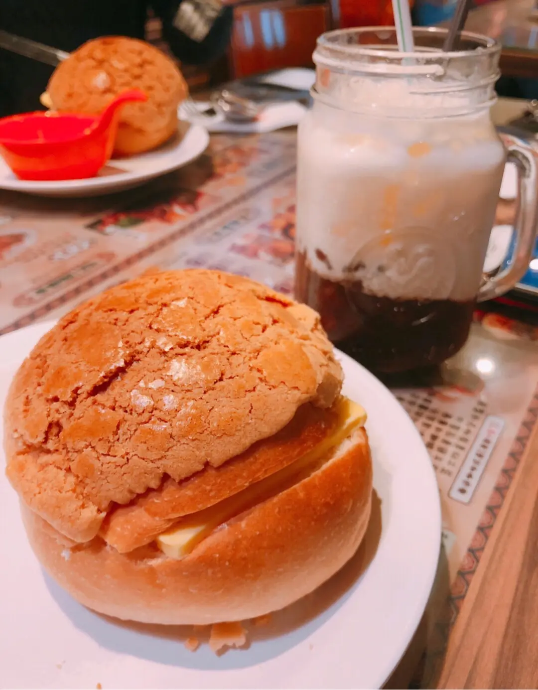 菠蘿油配紅豆冰