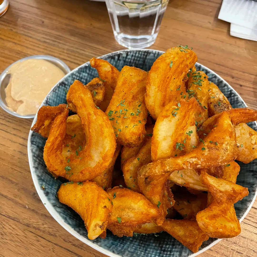 炸薯片配純素蛋黃醬