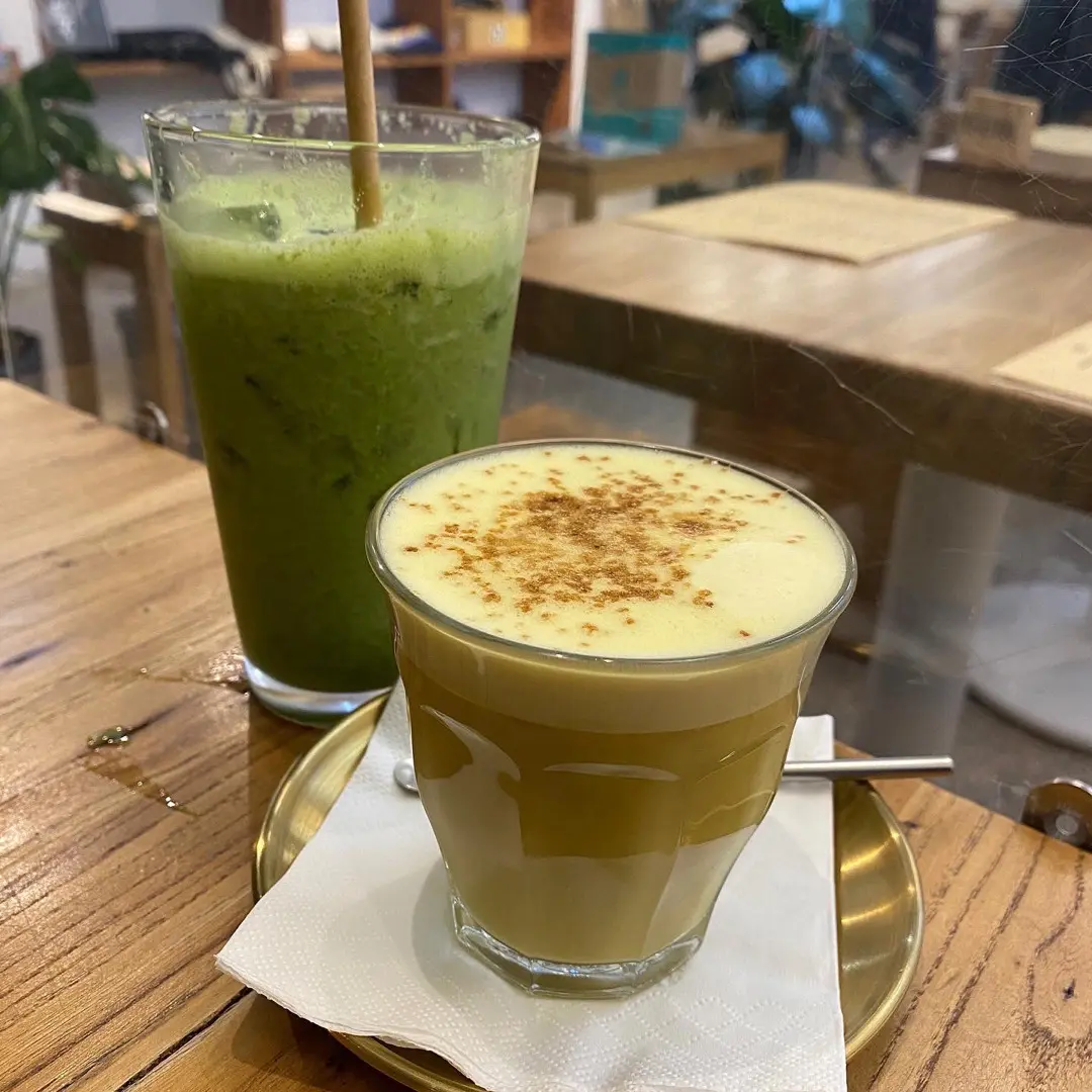 奇異果羽衣甘藍富士蘋果燕麥奶(後)黑糖薑汁燕麥奶(前)