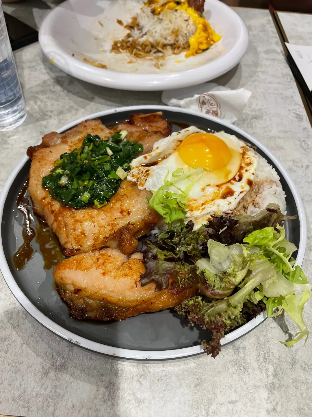 豬扒蔥油太陽蛋飯