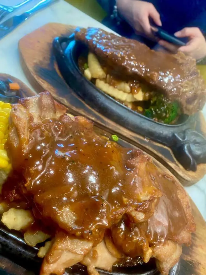 羅馬鐵板餐黑椒汁牛扒、羅馬鐵板餐黑椒汁雞扒