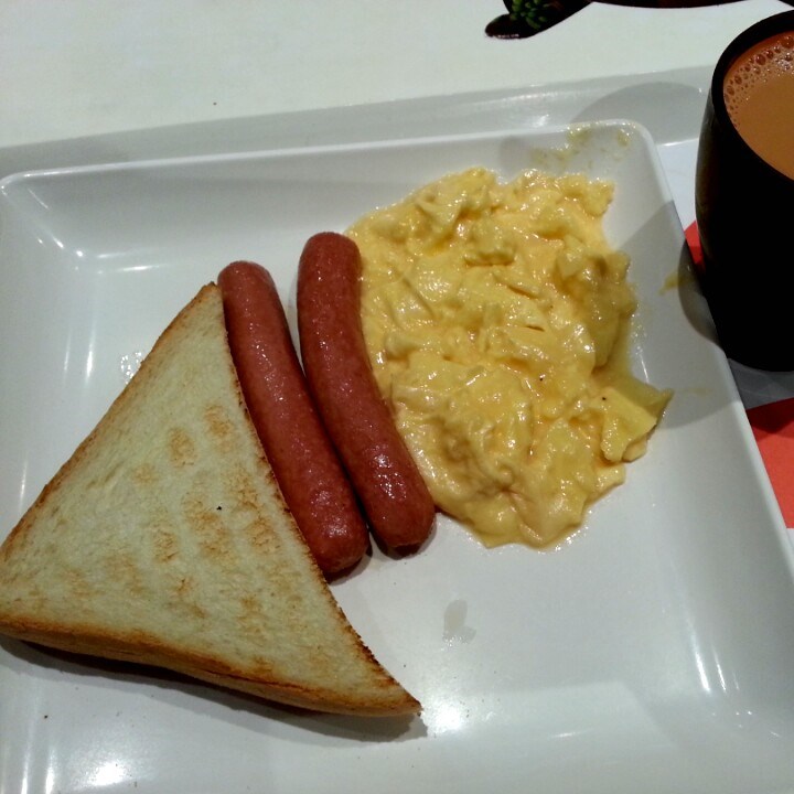 3.6牛乳嫩嫩炒滑蛋早餐 配厚多士、腸仔及熱奶茶