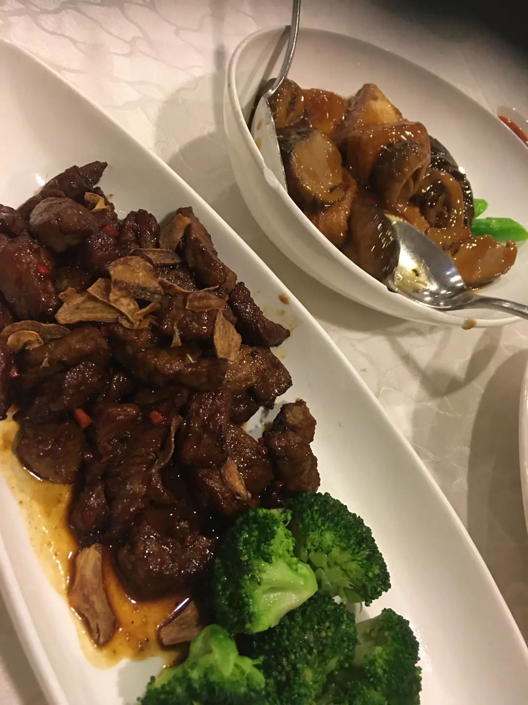 蒜片和牛粒(左)丶紅燒豆腐(右)