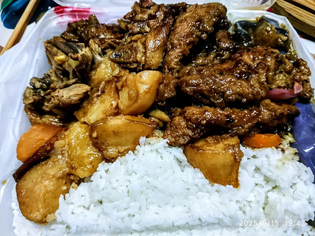三餸飯(魚香茄子、黑椒豬扒、薯仔炆鴨)外賣