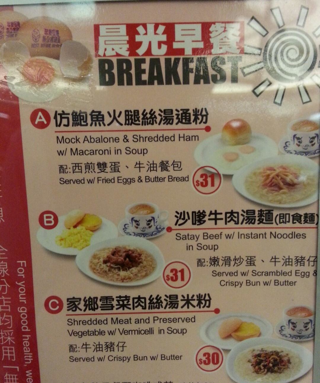 翠華餐廳 晨光早餐餐牌