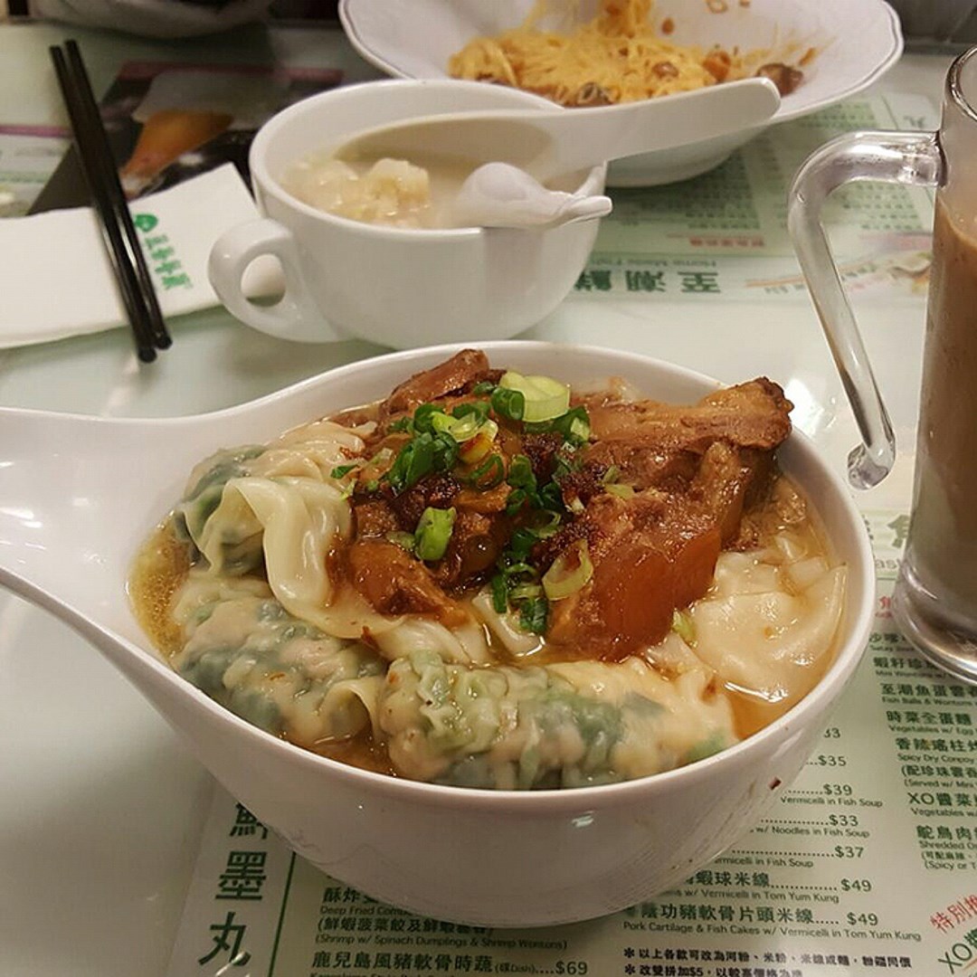 菠菜餃豬軟骨米線
