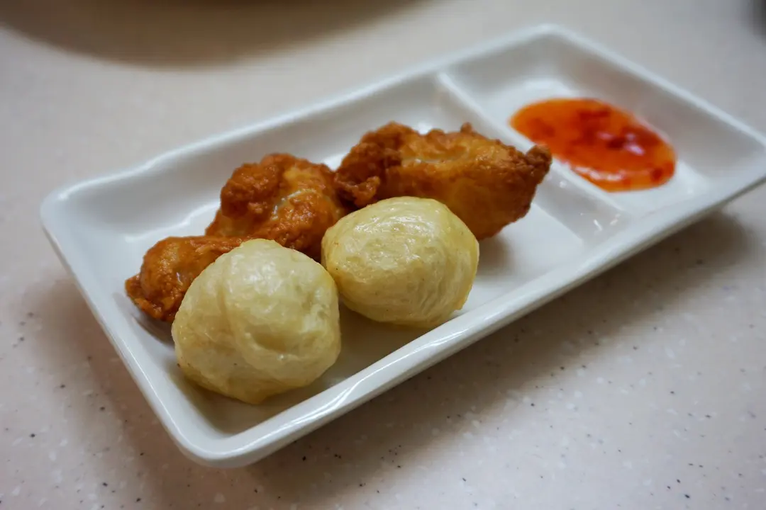 豬油撈蝦子麵 + 炸黃金蝦仁棗及墨魚丸