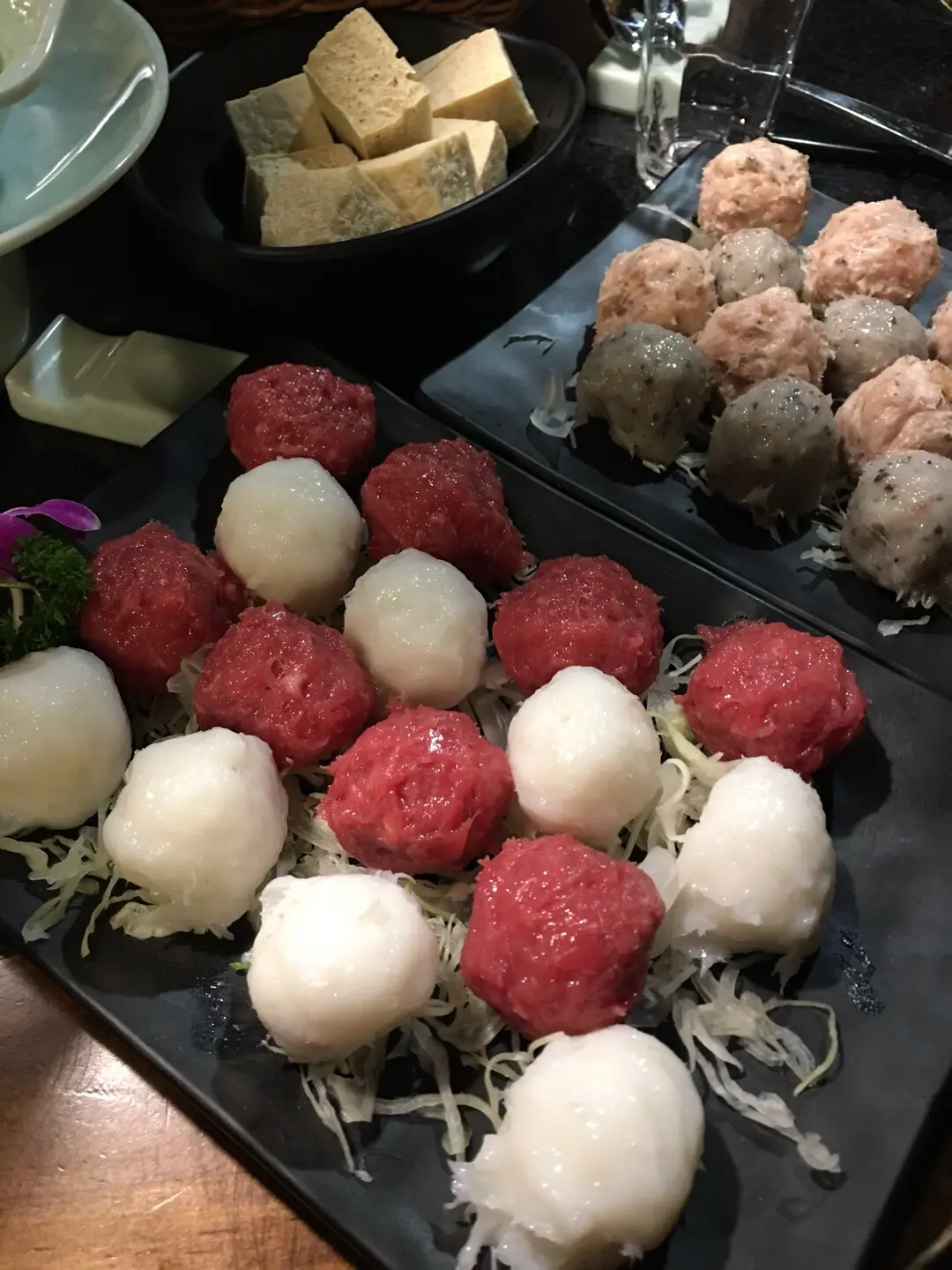 梅菜豬肉丸丶芝士牛肉丸丶鵝肝墨魚丸丶黑松露蝦丸、凍豆腐