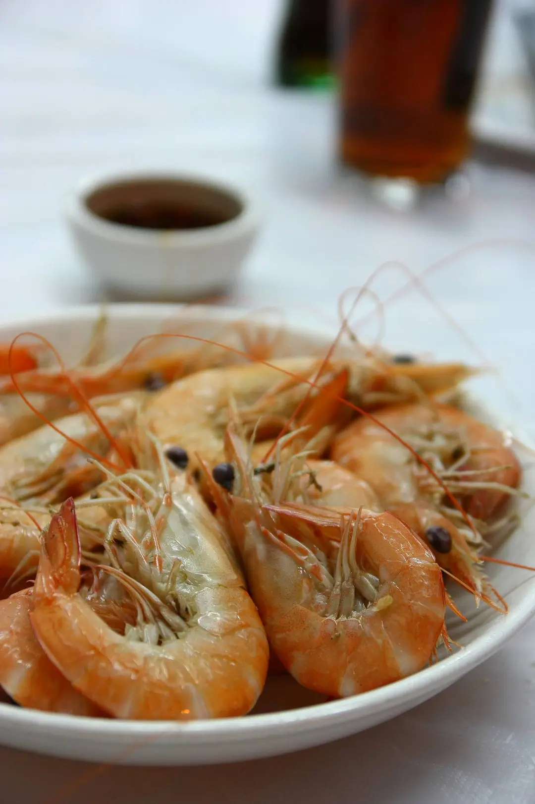肉爽實卻味淡的白灼蝦, 好在有碟辣椒豉油