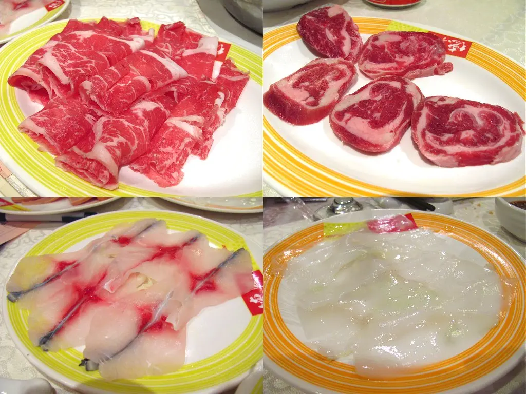 肥牛肉、牛眼筋、脆鯇魚片、花姿片