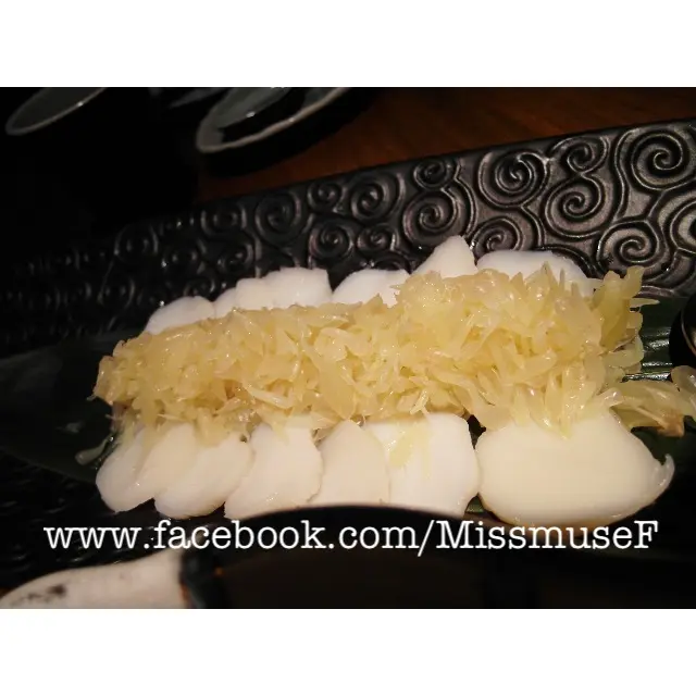 marinated scallops topped with fresd