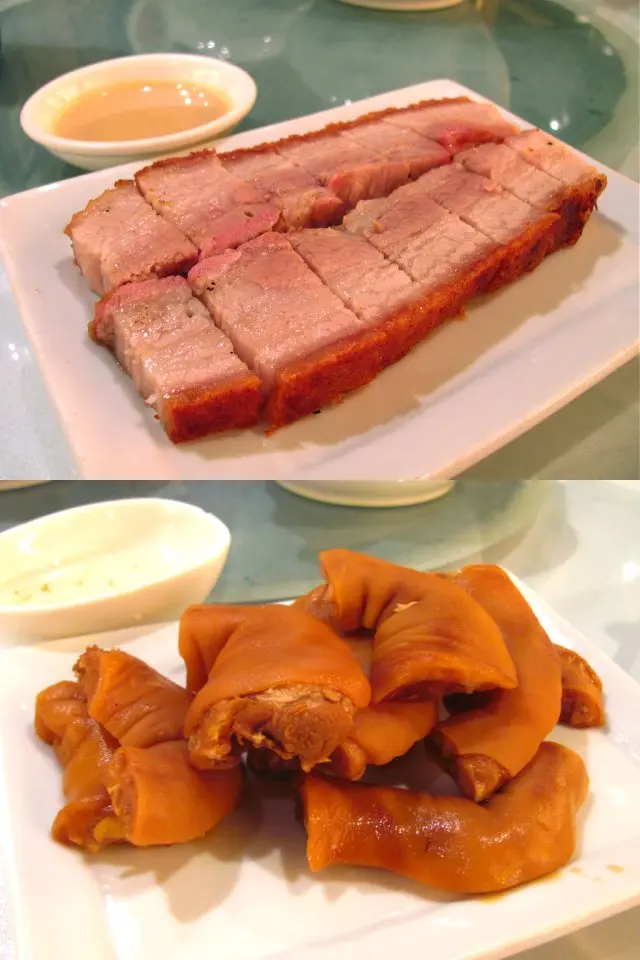 脆皮燒腩仔(上)、鹵水炆豬腳(下)