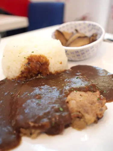 自選飯套餐,少飯量 + 咖喱汁 + 雞豚肉漢堡 + 冬菇