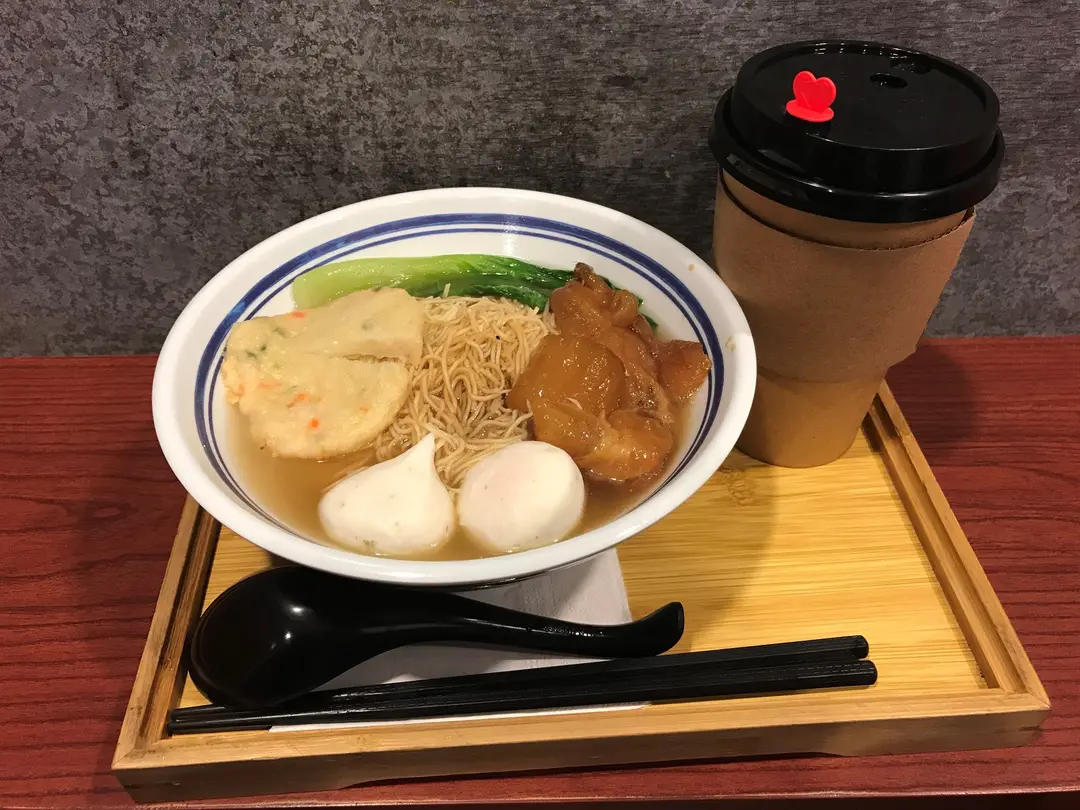 三餸車仔麵 (蟹子丸+蝦餅+牛筋) 配豆漿(熱)