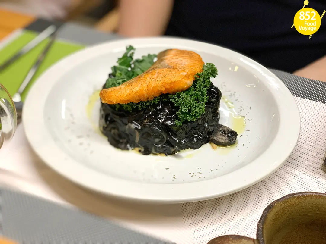 挪威三文魚柳墨魚汁寬條麵