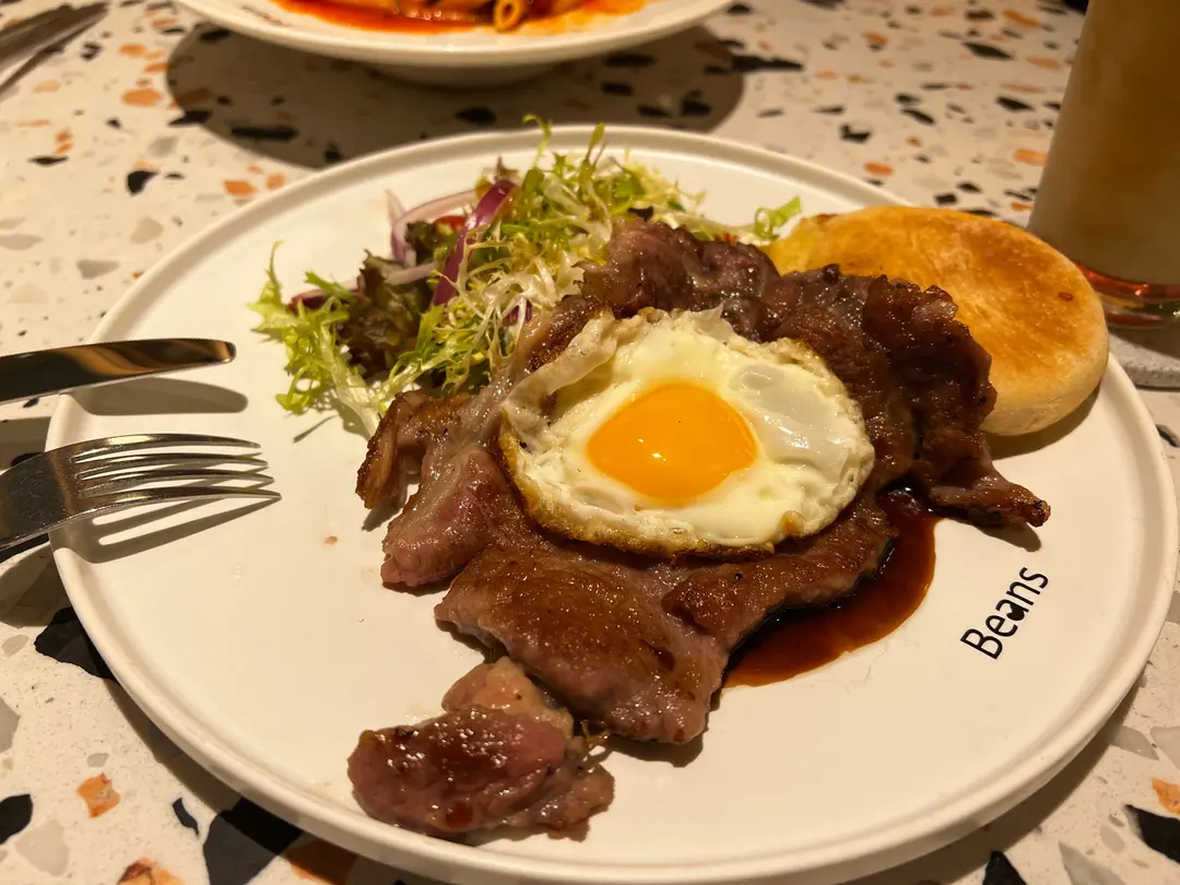 薄切西冷牛扒太陽蛋 鬆餅