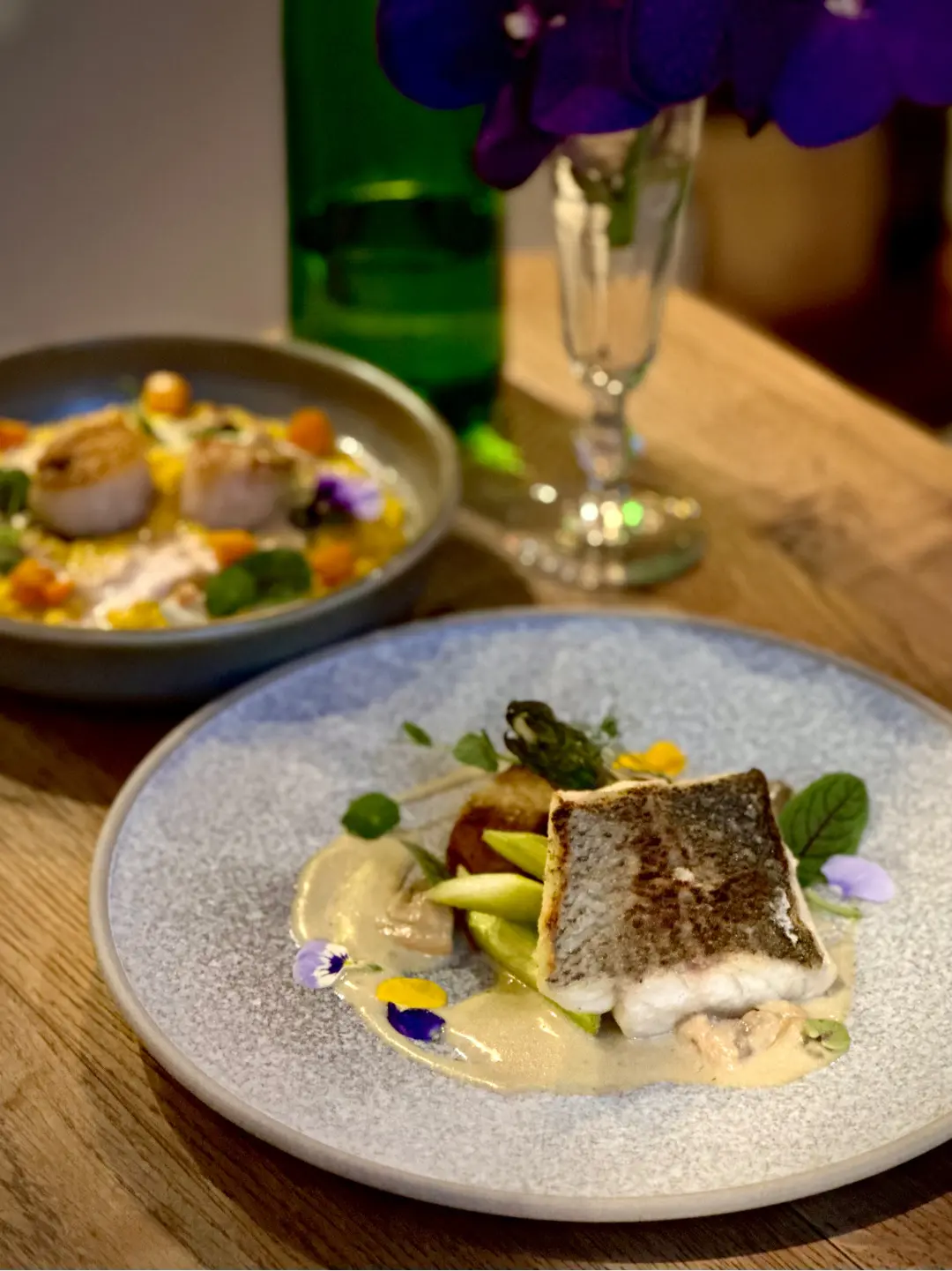 香煎鱸魚·蘆筍·蜆肉忌廉汁