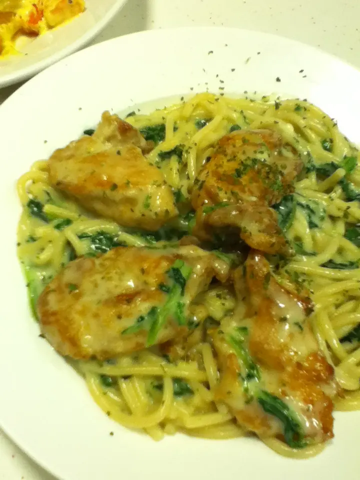 菠菜雞肉意粉