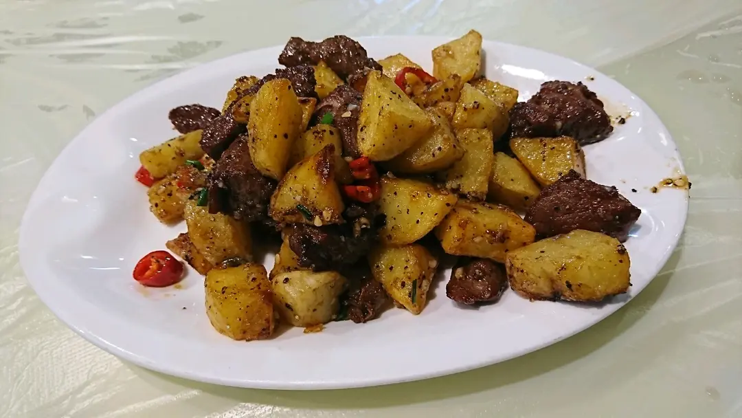 黑椒薯仔粒炒牛柳粒
