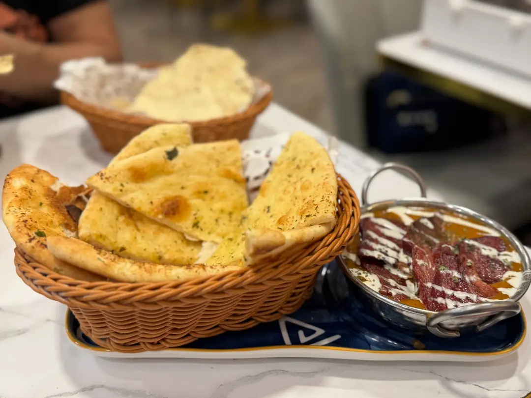 香料咖哩牛舌配蒜蓉烤餅