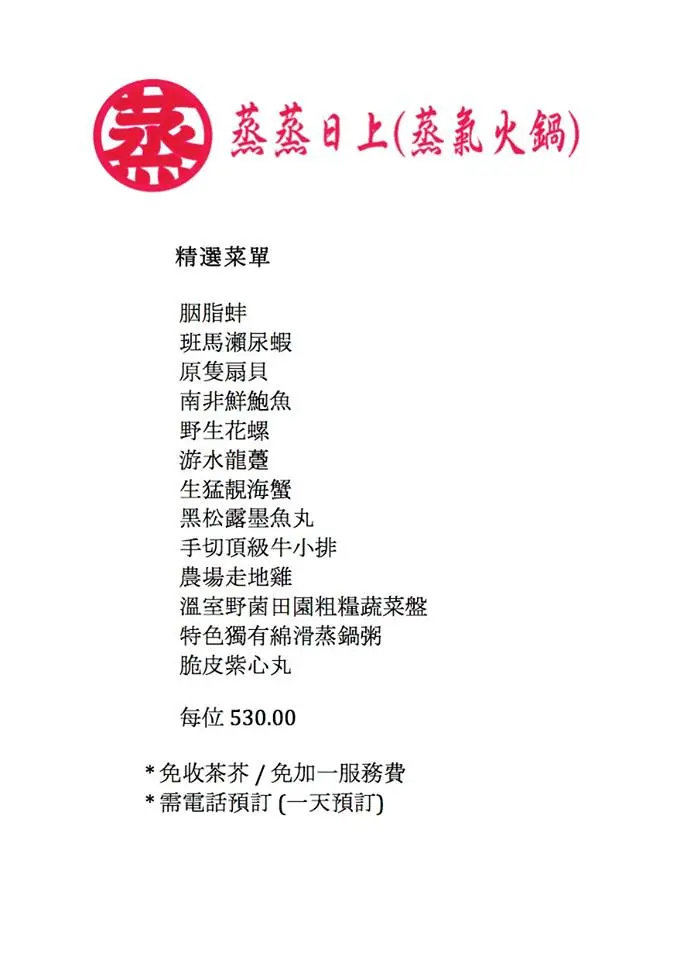 2016年12月推出之全新菜單