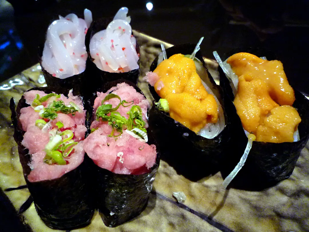 蔥吞拿魚, 櫻花魷魚, 海膽