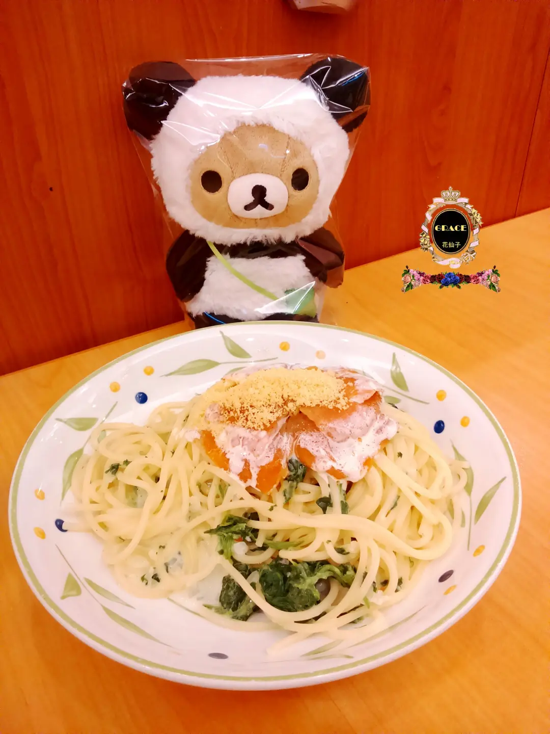 菠菜配煙三文魚忌廉意粉