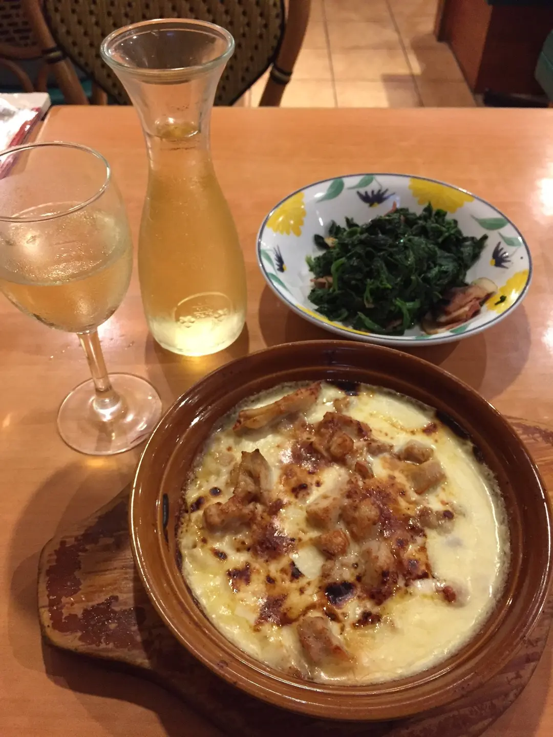 白汁雞肉焗飯、煙肉炒菠菜
