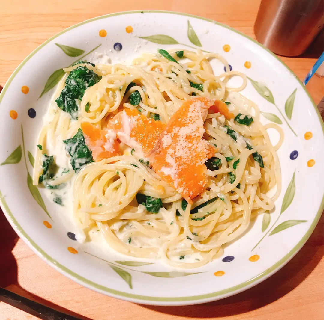 菠菜配三文魚忌廉意大利粉