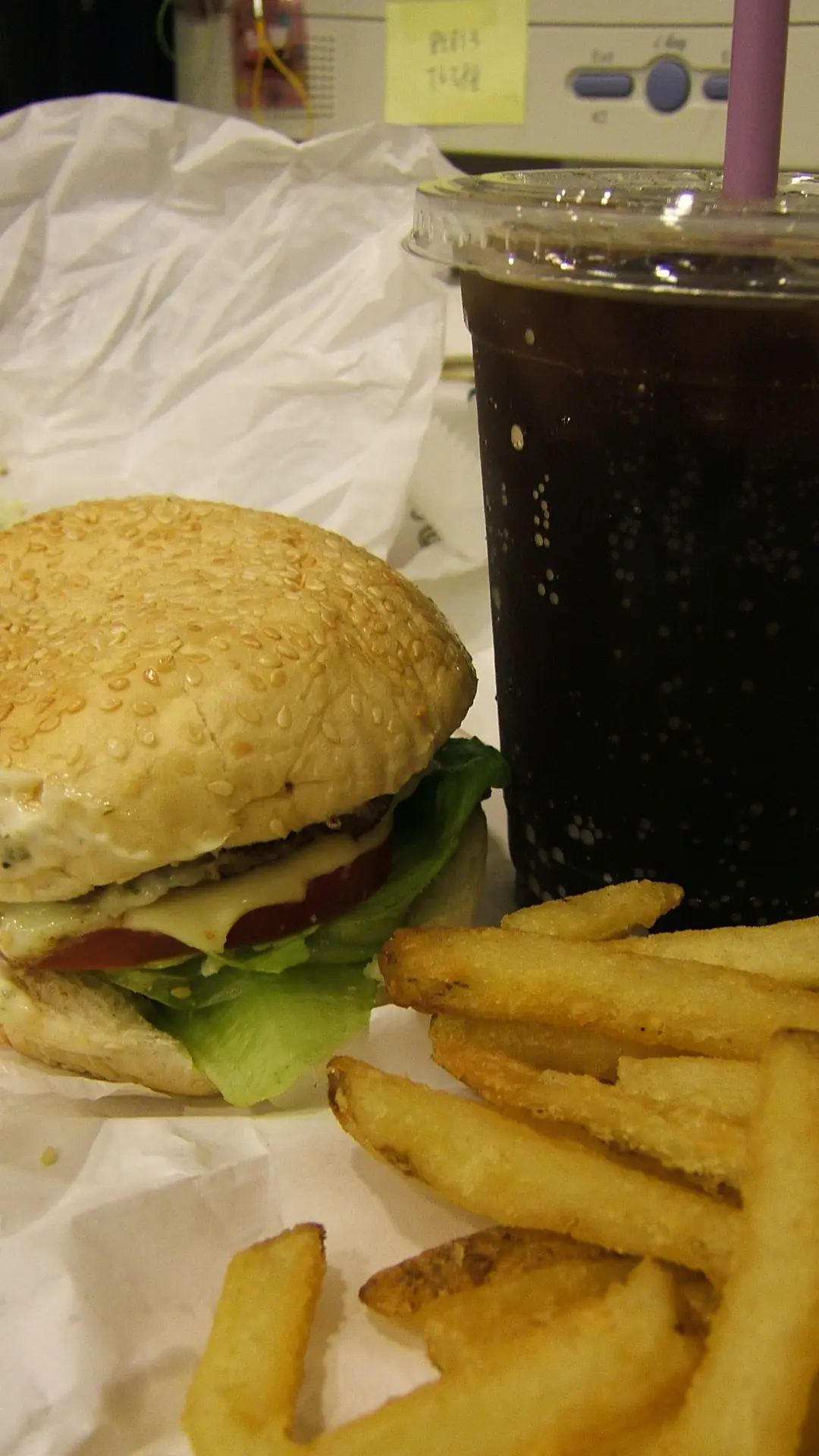薯條、可樂、芝士牛肉包