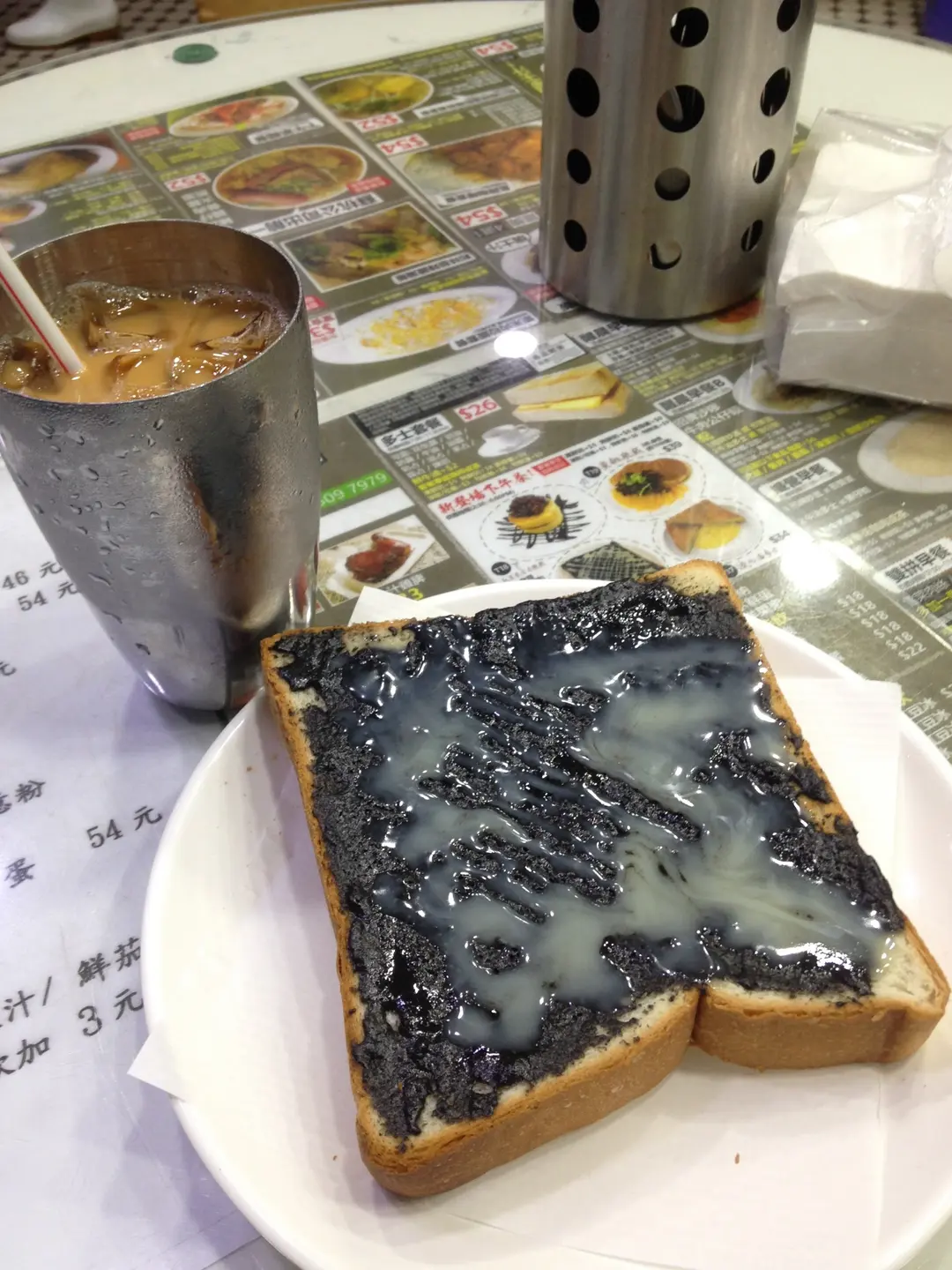 black sesame toast, iced tea