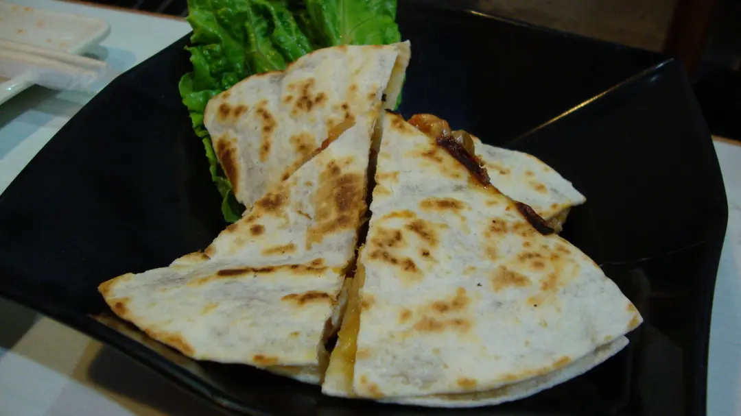 蘑菇烤雞薄餅。 餅皮烤的香脆,一口咬下不拖泥帶水,與內餡一起融入嘴裡。