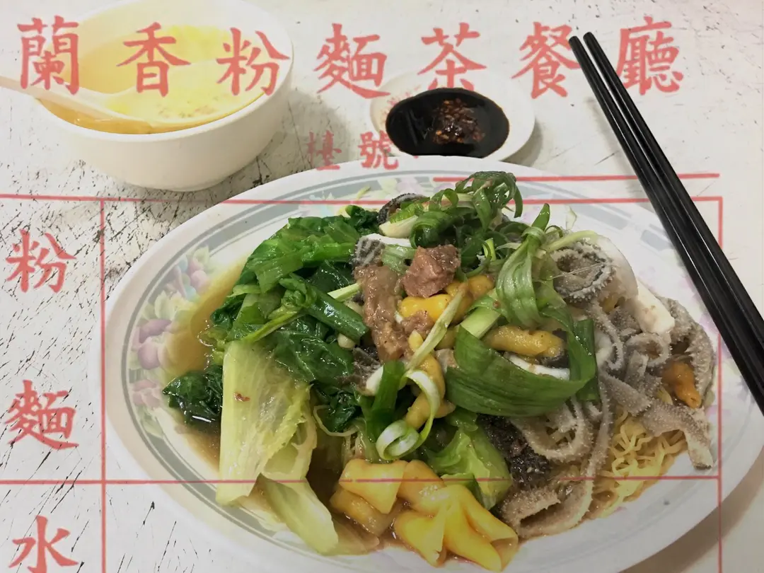 腩汁雞腸黑栢葉撈麵