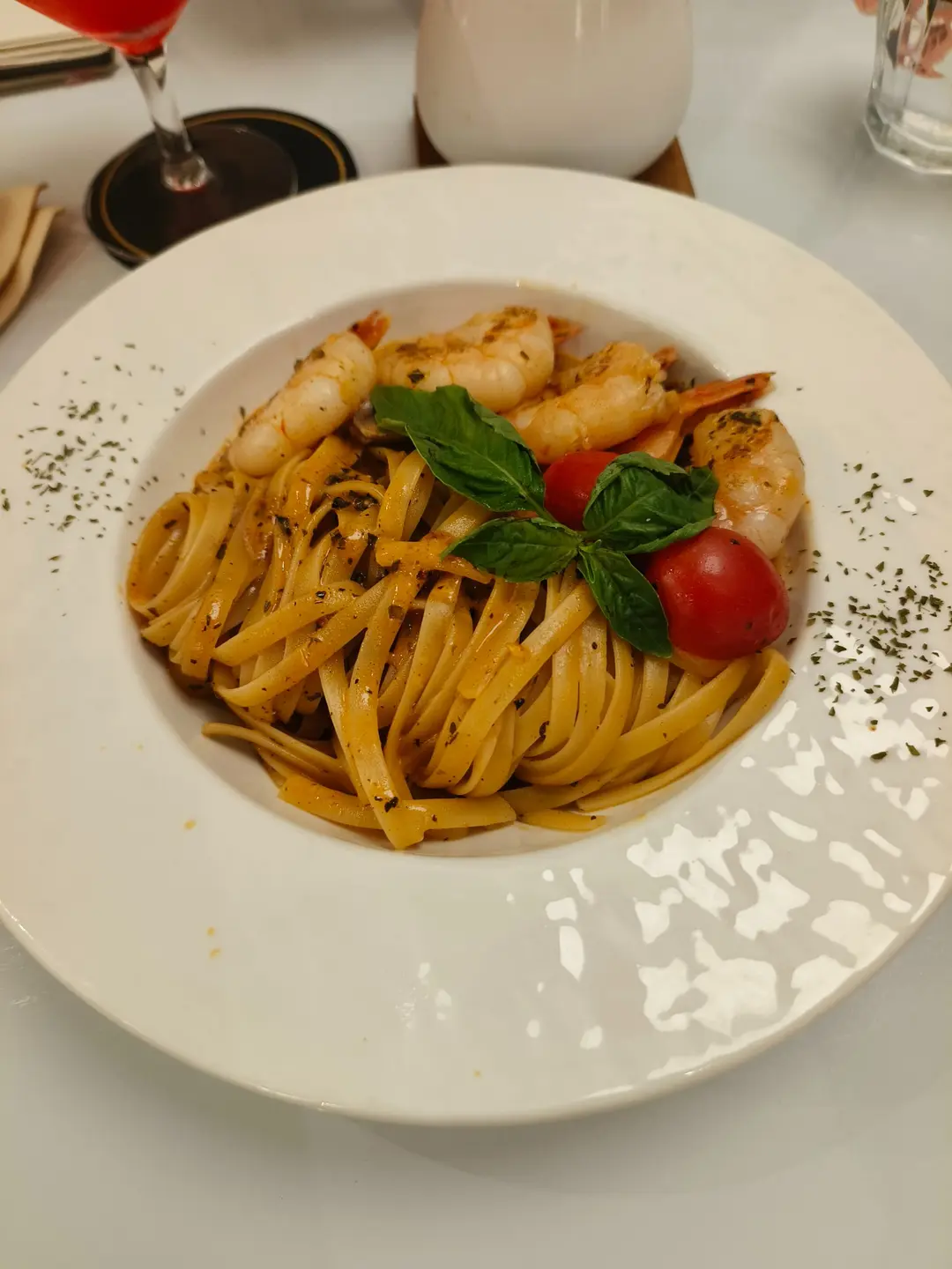 煎虎蝦香草濃蝦汁扁意粉