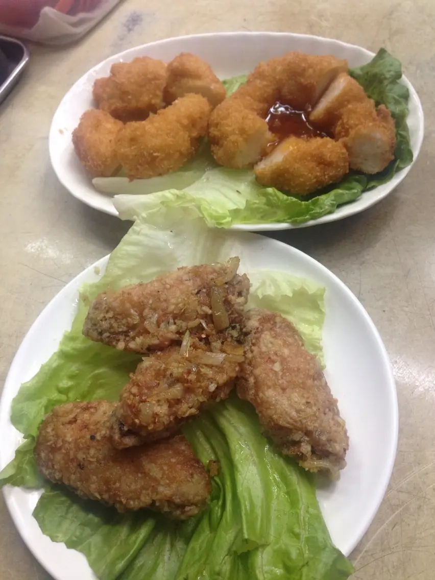 半份蝦餅+半份牛油雞翼