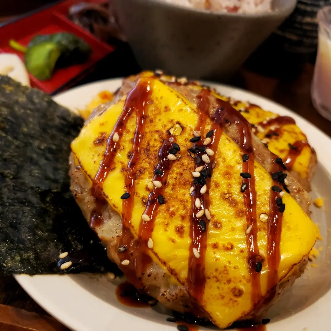 烤芝士漢堡扒伴海苔肉鬆