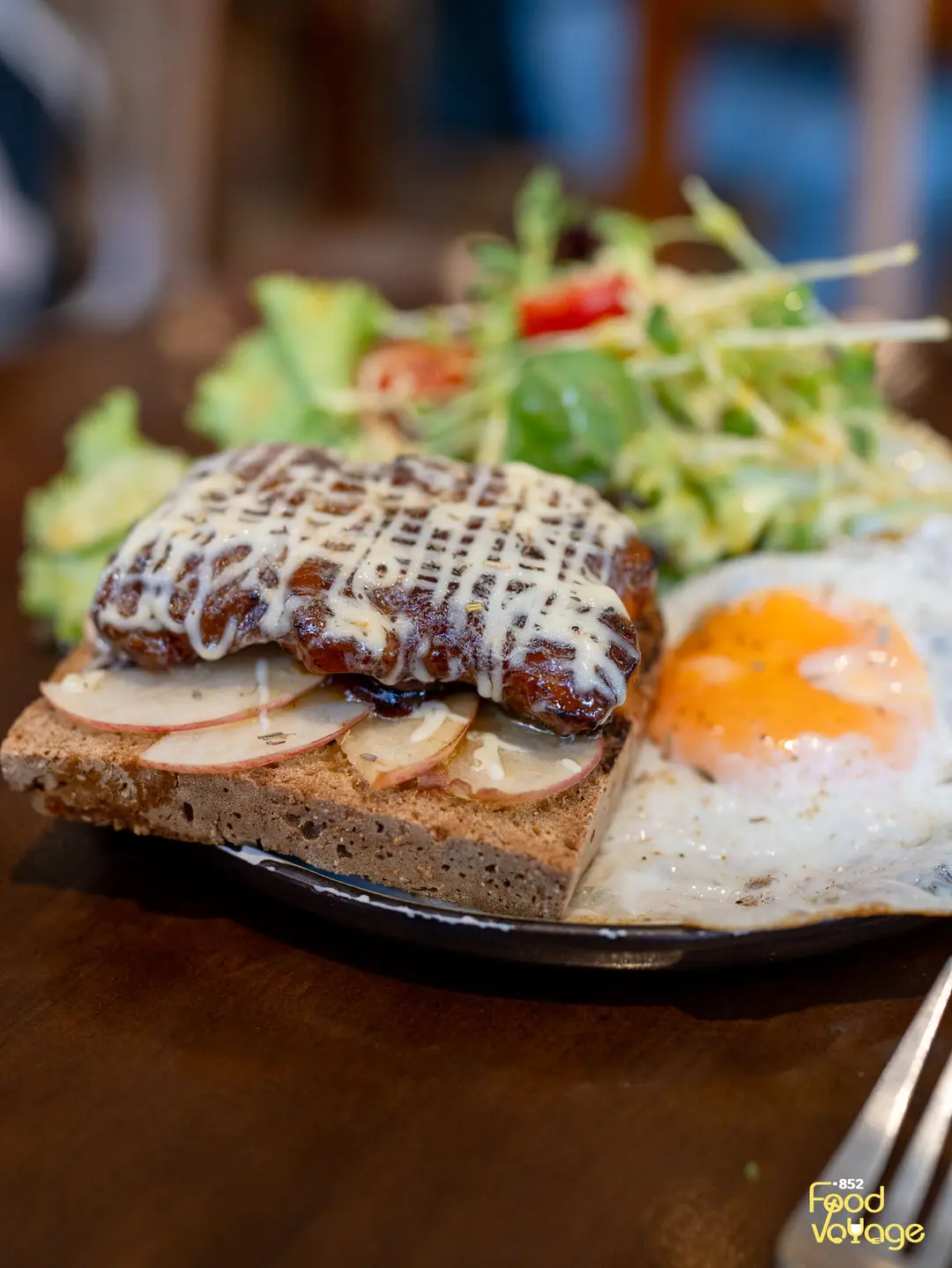 醬燒雞腿肉 x 蛋黃醬 煎日本極上蛋 自家製黑啤農夫包配沙律