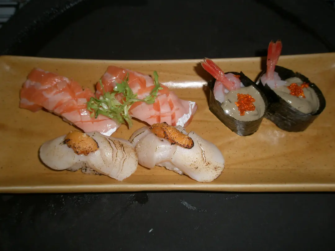蟹膏甜蝦壽司.. 海膽帶子壽司...三文魚腩壽司~~ 正正正