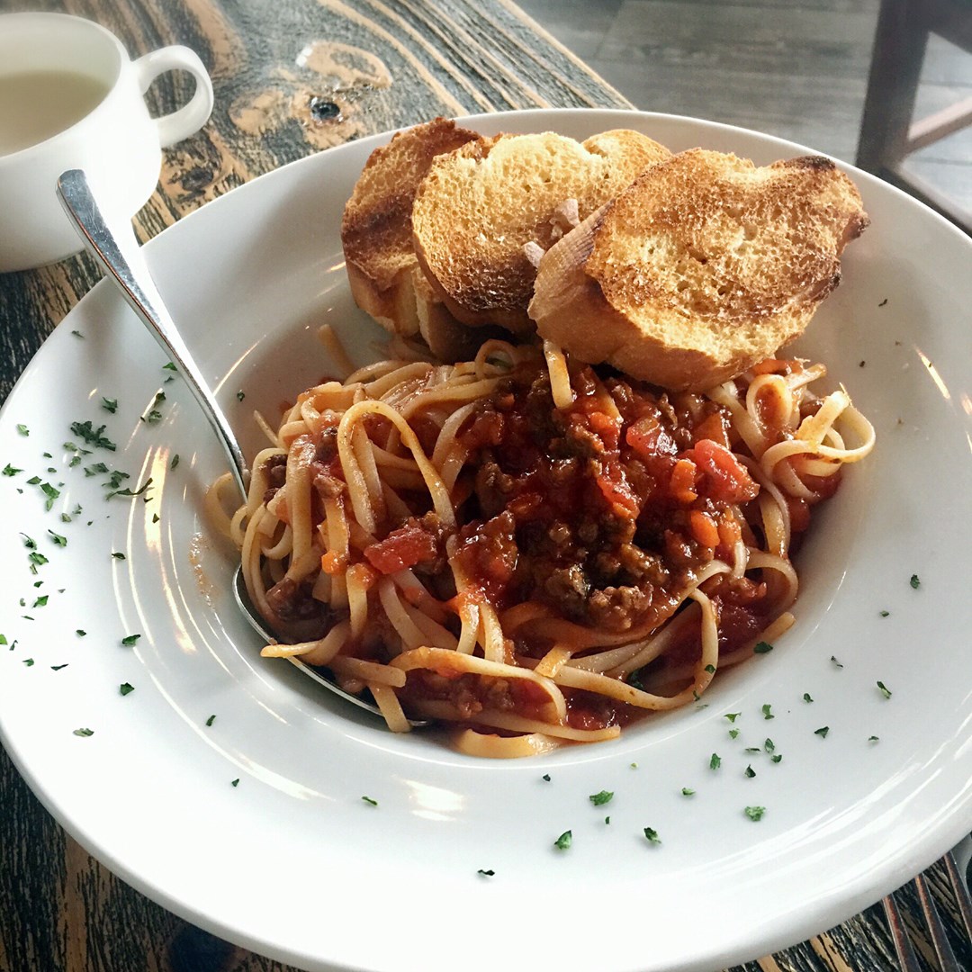 午餐:番茄肉醬扁意粉配法式麵包
