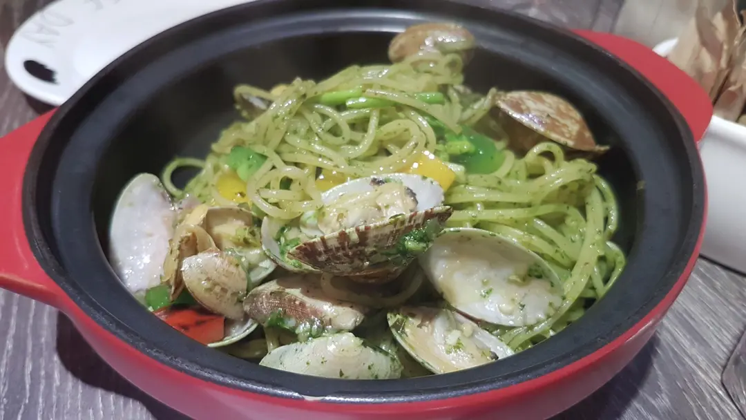香草蜆肉炒天使麵