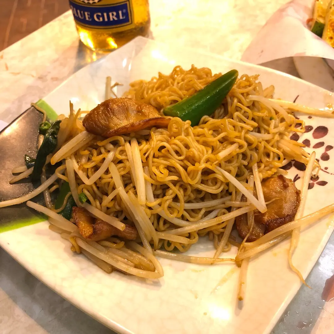 豬頸肉炒公仔麵