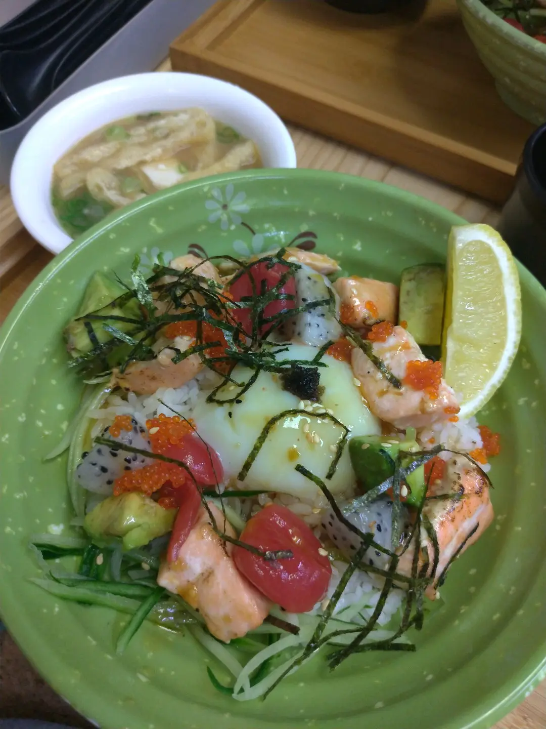 慢煮三文魚配牛油果丼