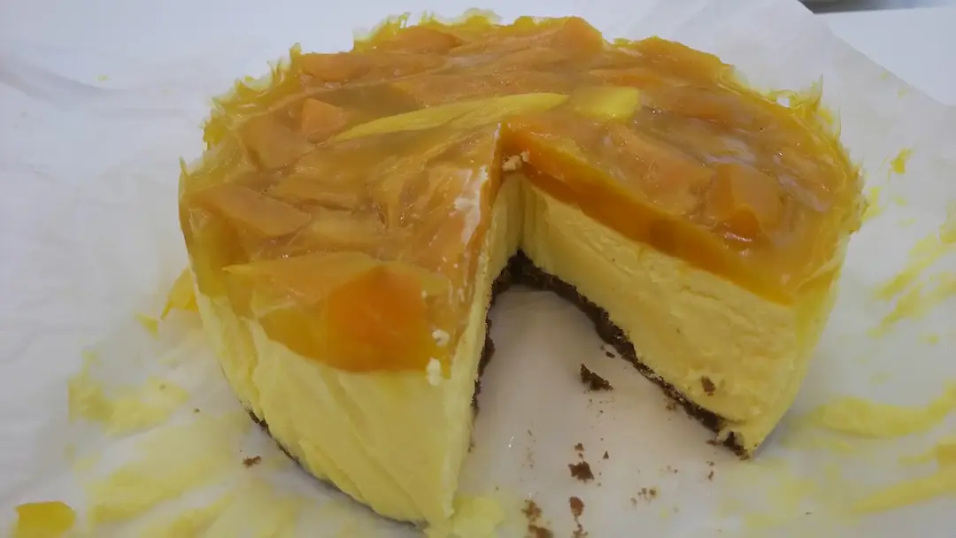 融心芒果乳酪蛋糕切開