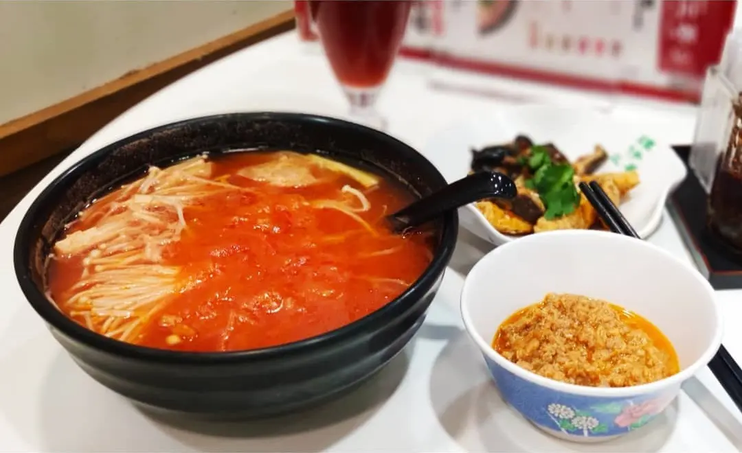 番茄湯米線配金菇乍醬
