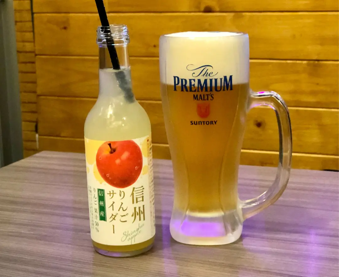 信州蘋果梳打 $36、Suntory 生啤 $48