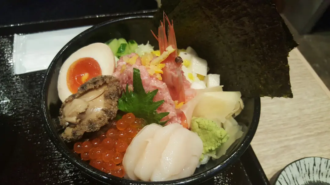 帆立貝招牌刀琢飛天黑鮪魚腩蓉丼