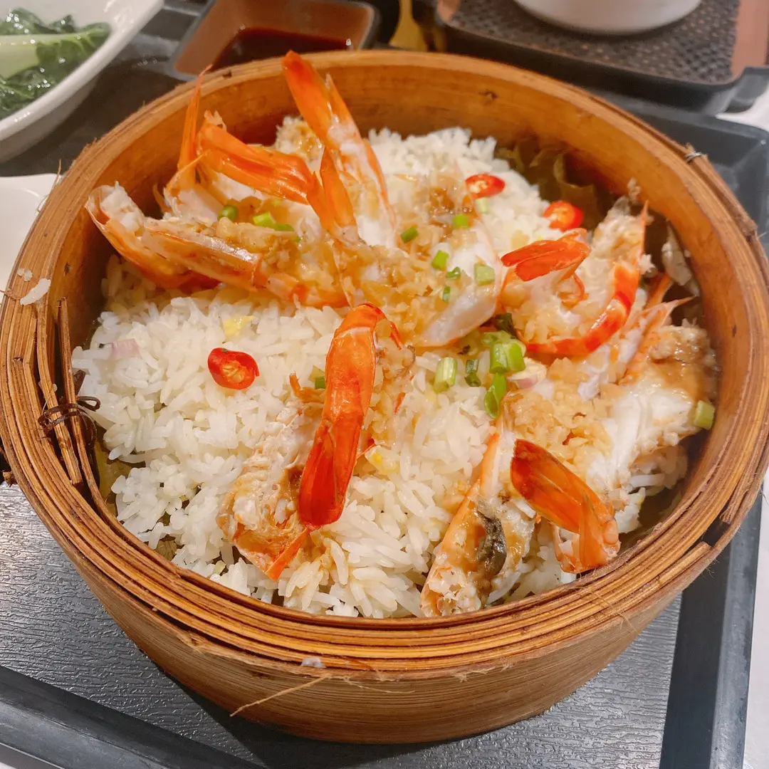 蒜蓉蝦籠仔蒸飯送油菜及例湯