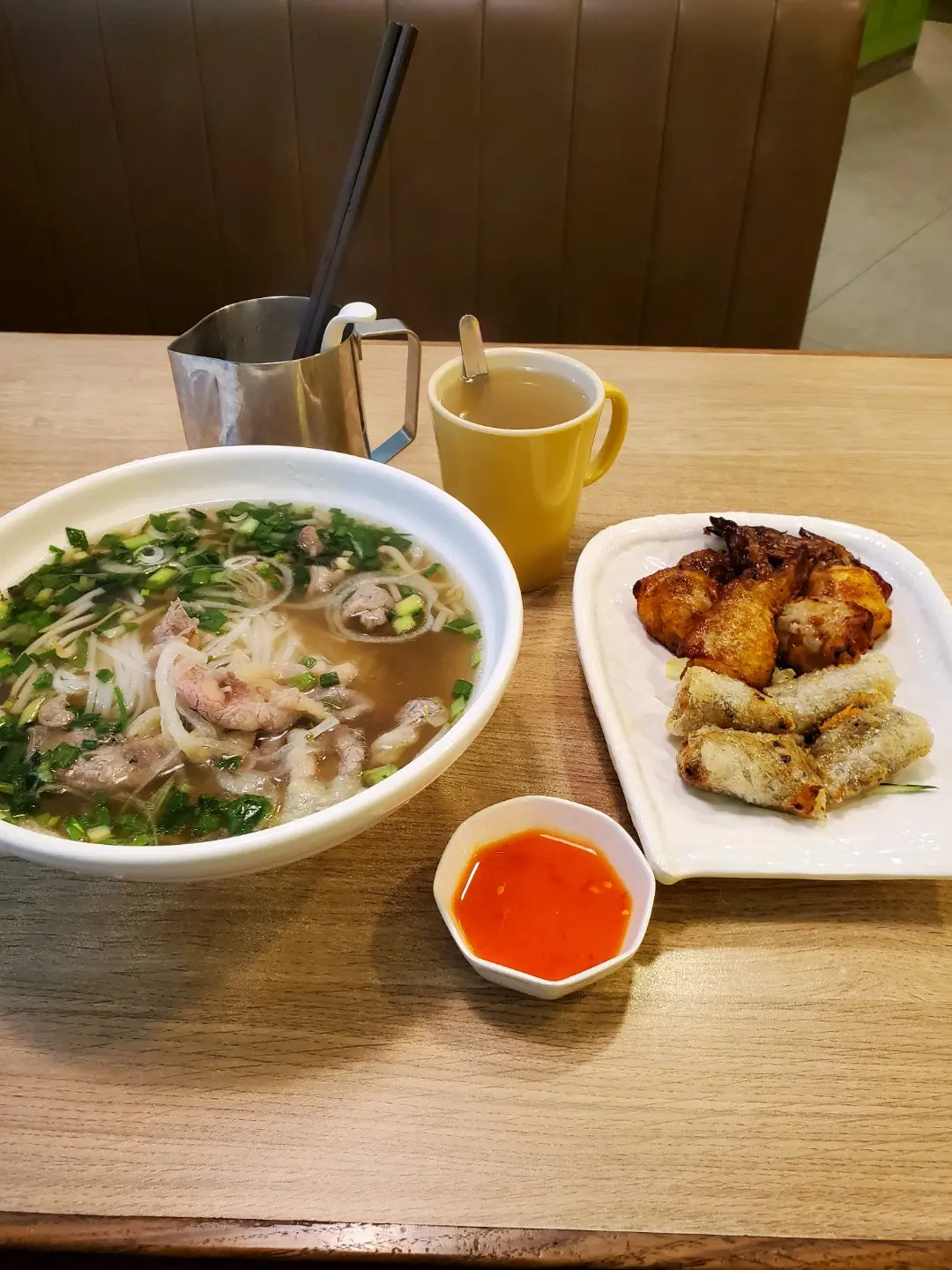 春卷+生牛肉金邊粉,芝士蘑菇雞翼,生薑茶